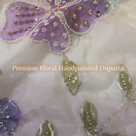Hand Painted Organza Dupatta – Floral Lightweight Elegance